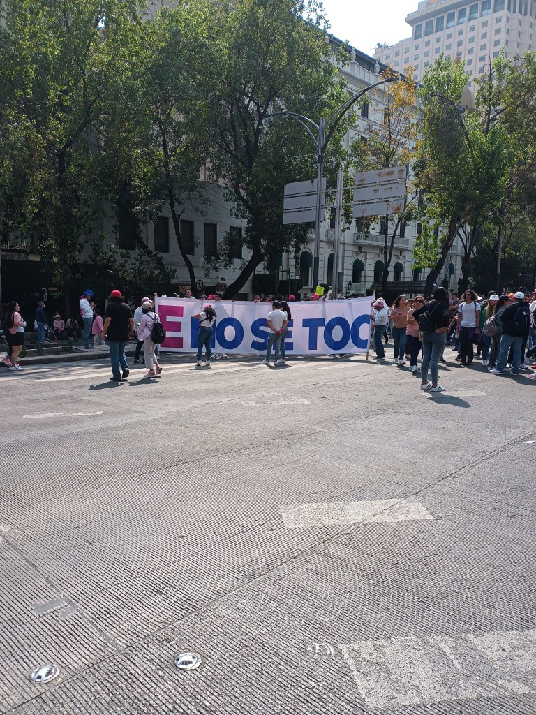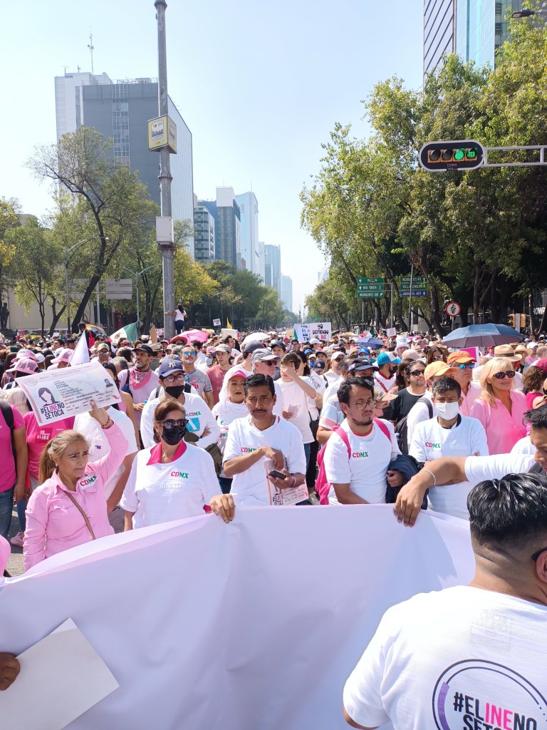 Estamos aquí ejerciendo nuestros derechos. El derecho a manifestarnos, a opinar, a reunirnos de manera pacífica para expresar nuestras preocupaciones y aspiraciones. Somos parte de una marea de opinión que aprecia y defiende la democracia.
